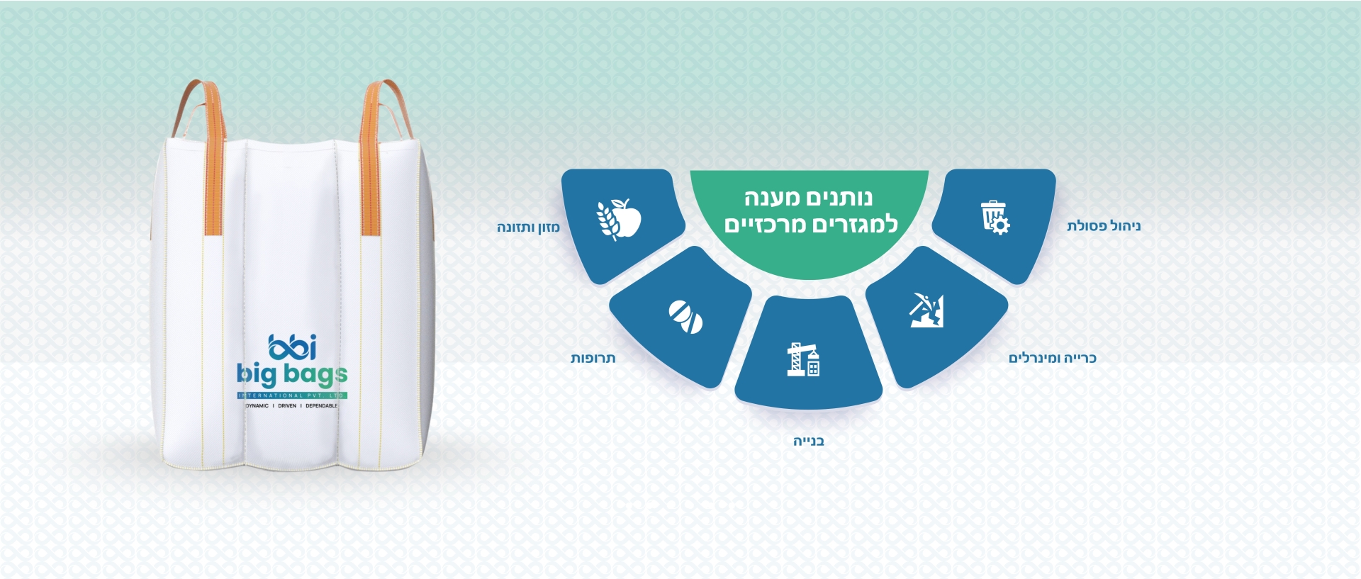 חברת Big Bags International Private Limited (BBI) ביססה את עצמה כספקית המובילה של מוצרים ופתרונות ברמה עולמית למכולות גמישות ביניים בתפזורת (FIBC). ההיצע המותאם בקפידה שלנו נועד לענות על הצרכים הייחודיים של לקוחותינו הגלובליים. נתמכים על ידי צוות מסור ומיומן של למעלה מ-3,500 אנשי מקצוע, אנו קובעים ועולים באופן עקבי על סטנדרטים של מצוינות בתעשייה.